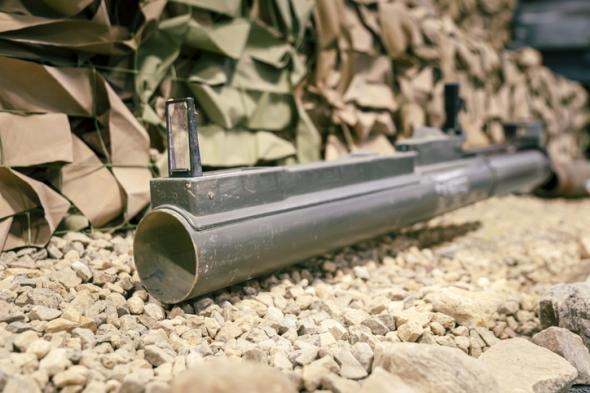 Un bazuka apoyado en un contenedor