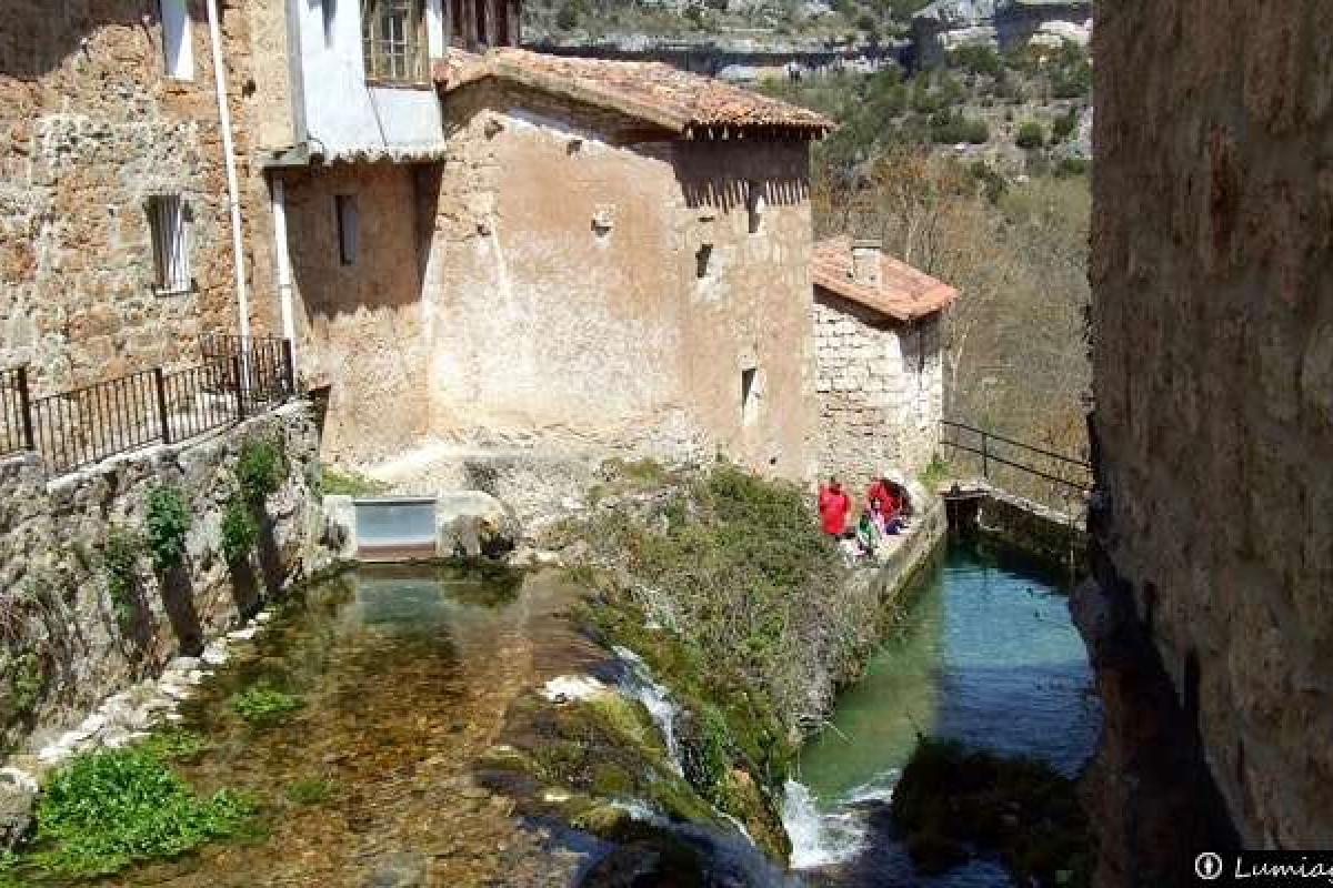 La Cueva del Agua, que se puede visitar con guía, es un punto central en Orbaneja del Castillo. Aunque no lleva agua en su interior, el ruido del agua cercana retumba en sus paredes, recordando su presencia constante. Antiguamente, el caudal del arroyo movía las piedras de cinco molinos harineros, cuyos restos aún se pueden ver.