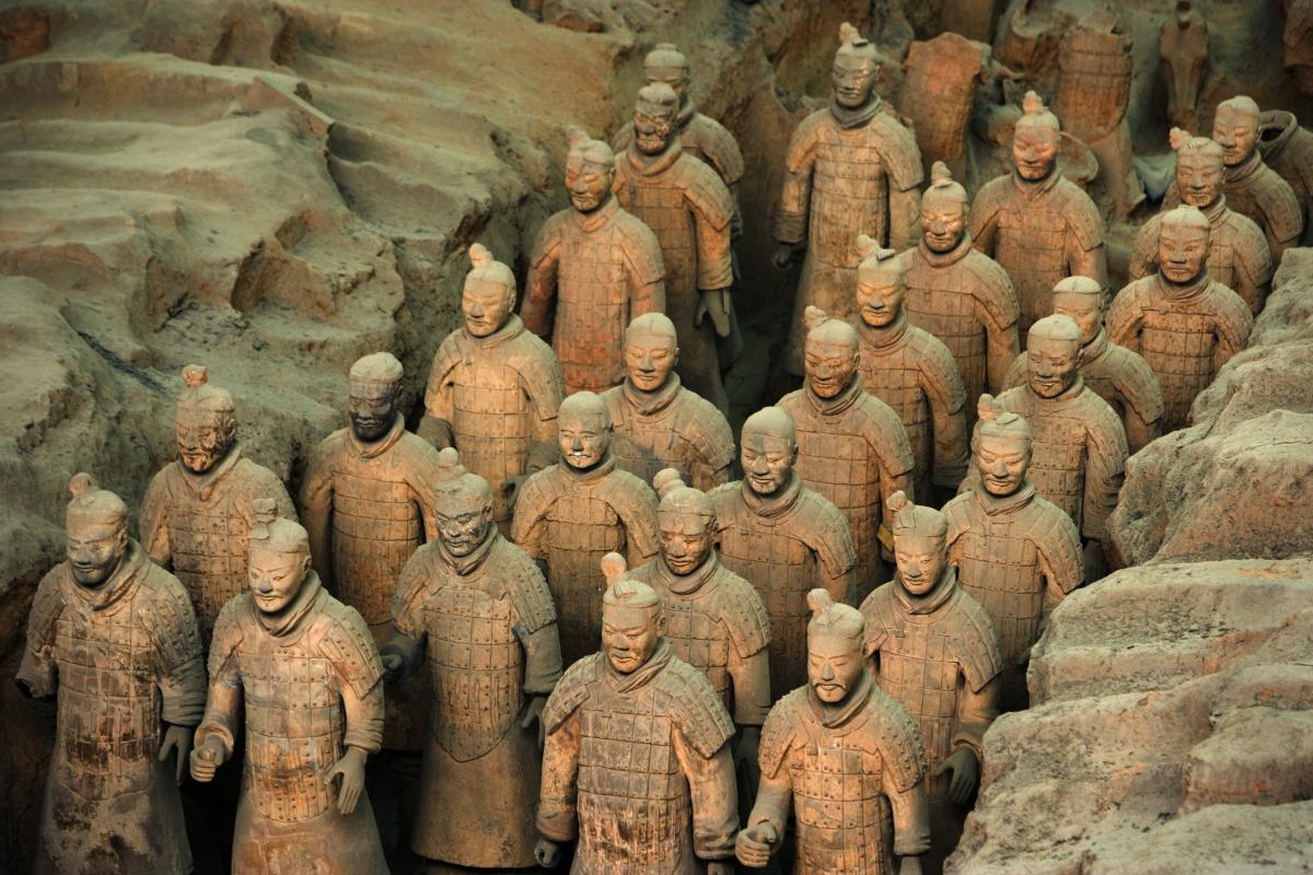 Seguro que has oído hablar de ellos. El Ejército de terracota son miles de modelos de arcilla de soldados, caballos y carros, en tamaño real, que se depositaron alrededor del gran mausoleo de Shi Huangdi, primer emperador de China y fundador de la dinastía Qin. Su propósito era actuar como figuras guardianas de la tumba o servir a su gobernante en la próxima vida.
