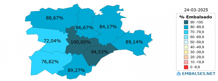Y es que, el mes de marzo de 2025 pasará a la historia por ser uno de los meses más lluviosos en décadas -si no el que más-. Y como prueba, nos encontramos con los innumerables embalses que en toda España se encuentran por encima del 90%, incluso en algunos casos al 100%.