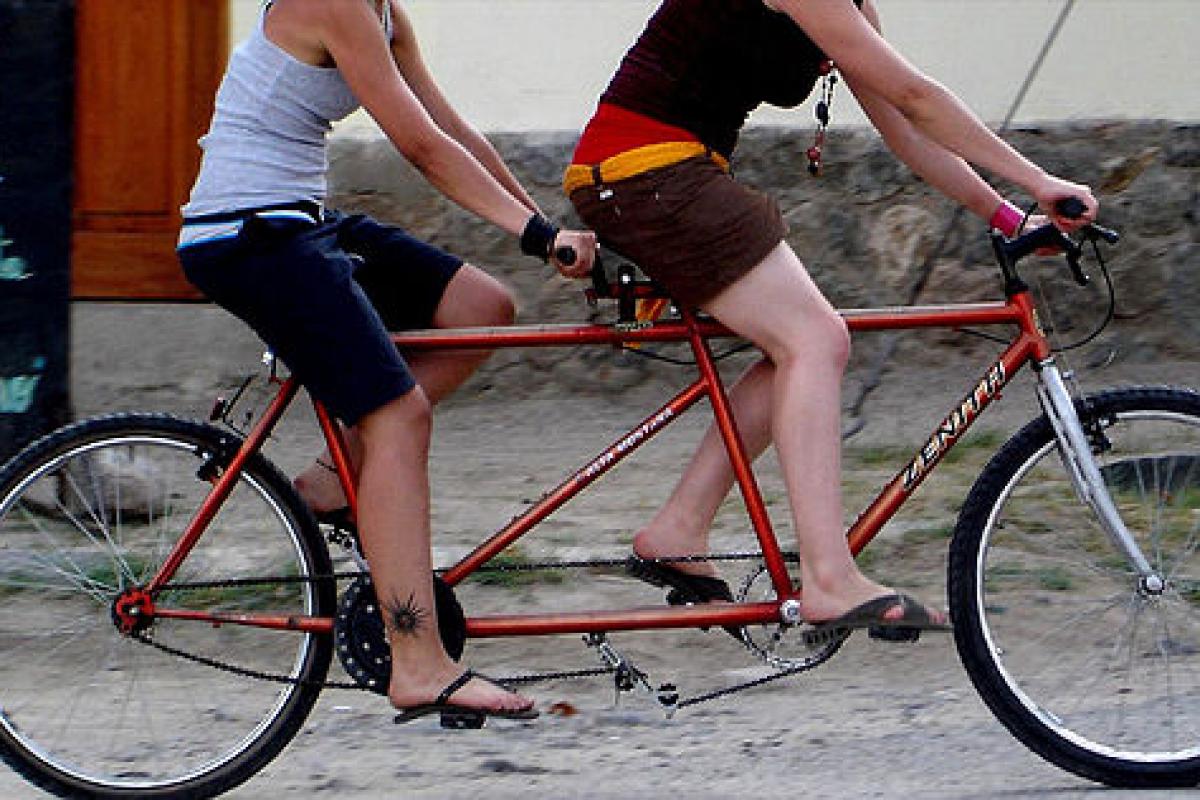 En ella dos o más ciclistas se sientan uno detrás del otro, cada uno con su propio juego de pedales.