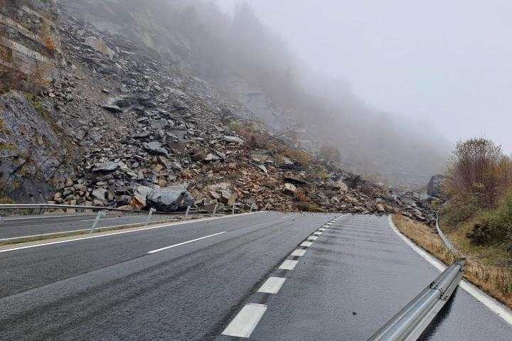 El derrumbe de la ladera, que ha afectado a los cuatro carriles de ambos sentidos de la vía, se ha producido sobre las 10:15 horas en el punto kilométrico 76, en el entorno del área de descanso de Entrerregueras, a catorce kilómetros de la localidad de Pola de Lena, según el Instituto Armado y la Delegación del Gobierno en el Principado.