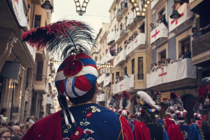 Una de las ciudades más conocida de España por sus fiestas de Moros y Cristianos, en las que recrean por sus calles la Reconquista, interpretando la lucha entre estos dos bandos por la conquista de la villa, y se rinde, además, homenaje a Sant Jordi, por la especial protección que dio a la ciudad en 1276.