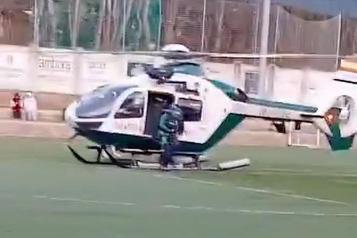 El campo de fútbol fue el único sitio despejado que encontró la unidad para poder aterrizar. El helicóptero hizo sonar sirenas para avisar con antelación a los jugadores.