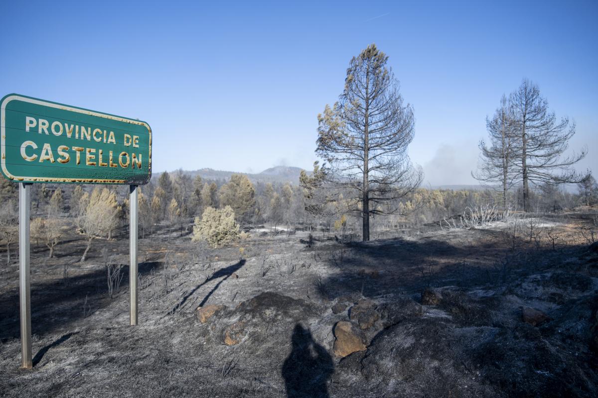 La evolución del incendio de Castellón durante la noche ha sido positiva y sigue sin aumentar ni la superficie arrasada por el fuego ni el perímetro afectado, mientras una veintena de medios aéreos empieza a trabajar sobre la zona durante el amanecer de este lunes.