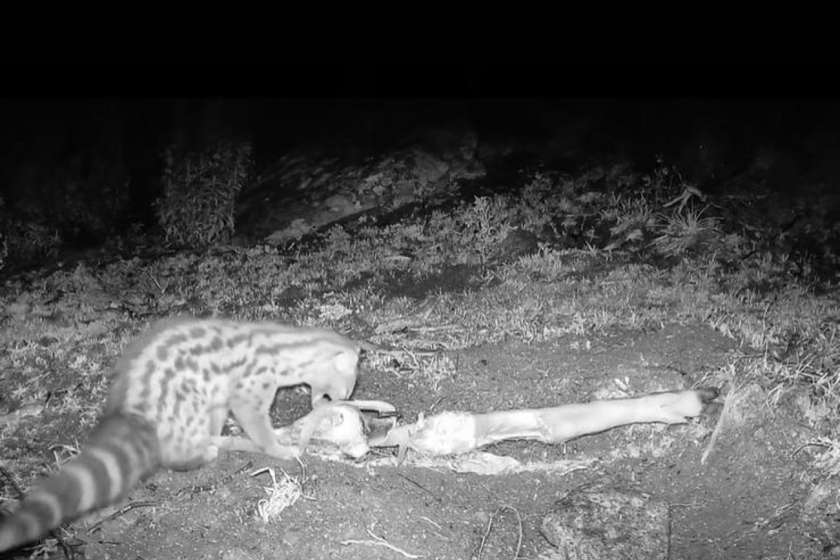 Dos zorros y una gineta han estado entre los animales que se han acercado a probar los restos de la pata de jamón. También otros animales que los usuarios de la red social debaton sobre si se trata de garduñas, tejones o hurones.