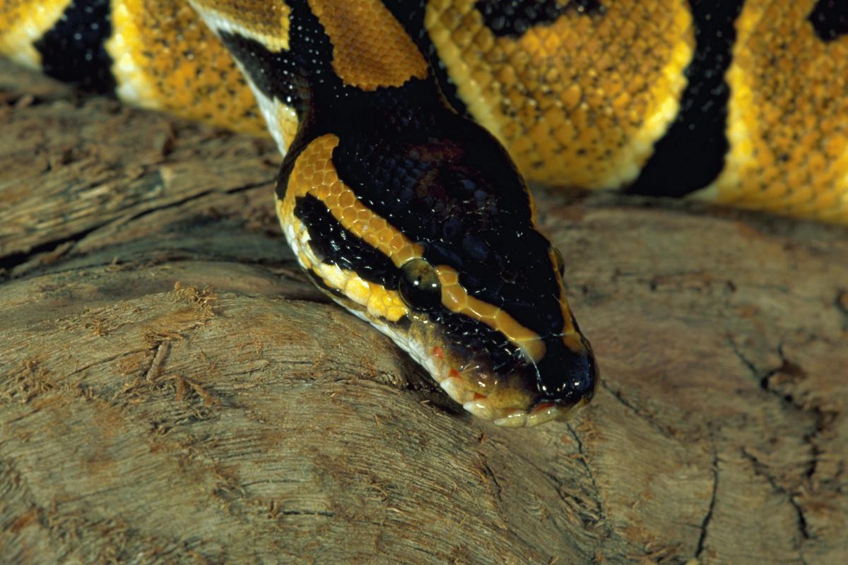 La pitón real también es conocida como pitón bola. El nombre proviene de su timidez, ya que suele enrollarse sobre sí misma lo que le hace parecer una bola. Debido a su docilidad, esta serpiente suele ser común como mascota.