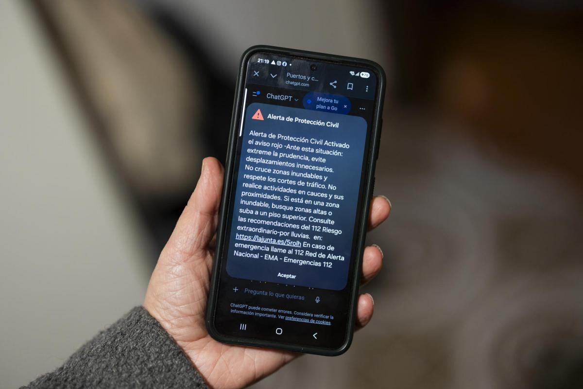 El mensaje de Es-Alert ha llegado a los móviles alrededor de las 21:00 horas, minutos después de la activación del aviso rojo por parte de la Aemet, y en él se pide a la población de la zona afectada que extreme la prudencia y evite desplazamientos innecesarios. Además, se pide no cruzar zonas inundables y no realizar actividades en cauces y sus proximidades.