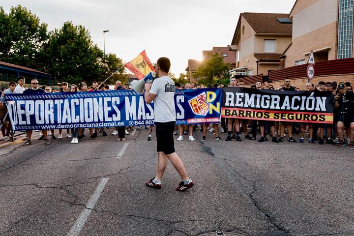 La concentración, a la que han acudido 170 personas según Delegación del Gobierno y en la que se ha llevado a cabo una detención por desórdenes públicos, ha contado con la presencia de una decena de integrantes de Núcleo Nacional, la organización de extrema derecha que ha apoyado este tipo de movilizaciones en las últimas semanas, tanto en Alcalá de Henares como en Torre Pacheco (Murcia).