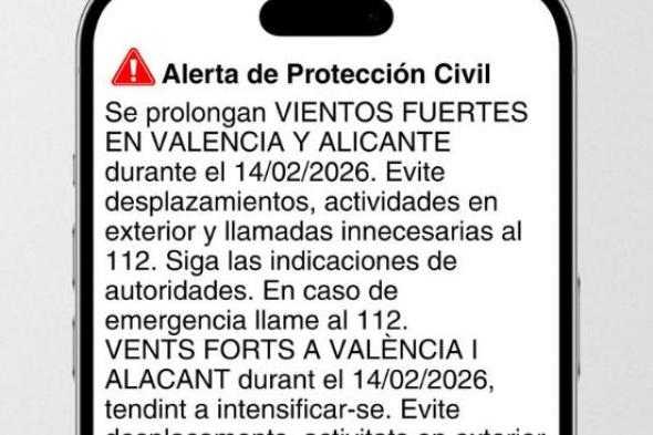 En la alerta enviada a los móviles de la provincia de Castellón, se especifica que la alerta por vientos es de nivel rojo, con inicio a las 00:00 horas, mientras que en la que se ha recibido en Valencia y Alicante se indica que se prolongan los vientos fuertes durante este sábado, con tendencia a intensificarse.