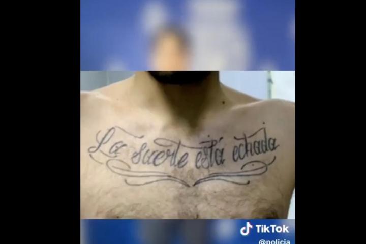 Ellos mismos responden a la pregunta: "Este, no". Y argumentan su afirmación de la mano de una secuencia de imágenes en las que se van viendo todos los tatuajes -bastante llamativos- que tiene esta persona, actualmente una de las más buscadas en España. En los costados, muñeca, pecho, antebrazos y brazos lleva hasta cinco tatuajes, a cada cual más grande. Destacan especialmente dos de ellos en los que se puede leer "Cristina" (en el brazo) o "La suerte está echada" (en el pecho). Los otros son el signo de piscis, una palanca de cambio de marchas y "Salvador".