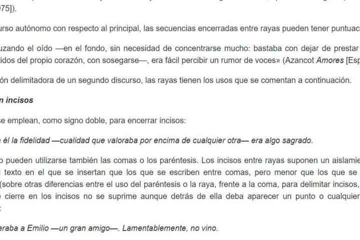 Además, la RAE especifica que en incisos incluidos dentro de otros incisos, se deben utilizar las rayas para la nueva aclaración, mientras que para intercalar datos en un inciso ya delimitado por rayas, se deben usar paréntesis. Esta jerarquía de signos ayuda a mantener la coherencia y la legibilidad del texto.