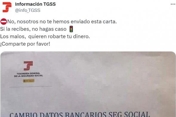 Para saber si estas cartas son reales o no, la TGSS informa de el organismo nunca va a pedir datos sensibles. "¿Hemos sufrido un ataque y hemos perdido tus datos, pero no tu dirección ni tu nombre? ¿Sólo hemos perdido tu cuenta bancaria? ¿La carta es de la TGSS pero la firma el INSS? Desconfía siempre. Si dudas, dínoslo y te ayudamos", agrega.
