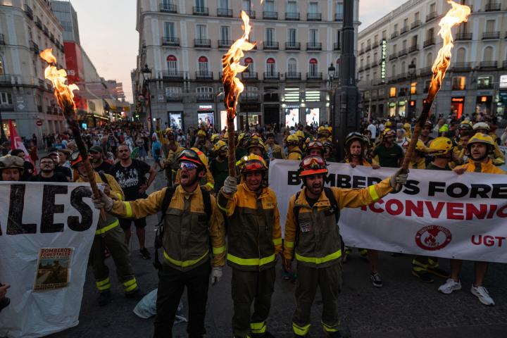 La llama del conflicto laboral de los bomberos forestales de la Comunidad de Madrid sigue muy viva. Tras más de tres horas de reunión con representantes del Gobierno regional y de la empresa pública Tragsa, el comité de empresa ha anunciado que continuará con la huelga indefinida inciada hace semanas tras finalizar "sin avances" un encuentro que consideran "totalmente insuficiente".