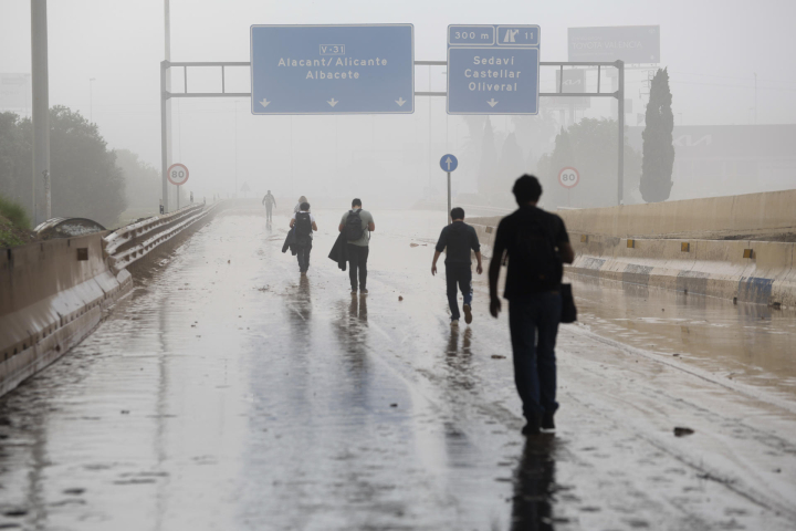 Vista general del nuevo cauce del TuriaLa V-30 atascada a su paso por el barrio de La Torre de Valencia.EFE / Manuel BruqueVehículos en PicañaHa sido una de las localidades más afectadas.EFE / Biel aliñoUn vehículo en PicañaEstado en el que ha quedado el coche tras las intensas lluvias.EFEVista general del polígono industrial de SedavíAnegado a causa de las lluvias torrenciales.EFE/Miguel Ángel PoloVista general de la V-31En Sedaví.EFE / Miguel Ángel PoloVista general del nuevo cauce del TuriaRepleto de agua.EFE / Biel AliñoVarias personas limpiando el lodo acumuladoEste miércoles en Valencia.EFE / Manuel BruqueVarias personas transitan por la V-31La carretera quedó cerrada al tráfico.EFE / Miguel Ángel PoloVarias personas transitan por la CV-36Entre Valencia y Paiport.EFEMúltiples personas transitan por la CV-36 entre Valencia y PaiportaCuando el tráfico se encuentra cortado en gran parte de las carreteras de la provincia.EFE/Biel AliñoCauce del TuriaA la altura de Xirivella.GTRESDos personas contemplan el nuevo cauce del TuriaRepleto de agua a causa de la gota fría.EFE / Biel AliñoLa AlbuferaVista general del embarcadero de la Gola de Putxol.EFE / manuel bruqueDos personas abandonan el barrio de La Torre de Valencia.Uno de los barrios periféricos de la zona sur que ha sufrido inundaciones.EFE / Manuel BruqueUna persona rescatada de una de las zonas afectadas por las inundaciones baja de un coche de la Guardia CivilEn la ronda Sur de la ciudad.EFE/Miguel Ángel PoloCoches amontonadosEn LlombaiEFE / ANA ESCOBARUn vecino de LlombaiObservando con preocupación la crecida del agua.Eva ManezUn garaje anegadoDebido a las lluvias torrenciales que han afectado a la Comunidad ValencianaEFE / Ana EscobarVarias personas aguardan ante el complejo municipal La PetxinaEs el primero de los centros que ha habilitado el Ayuntamiento de València ante los desalojos que se han producido en algunas pedanías.EFE / ANA ESCOBARCaminos cortados en Rafelguaraf En el mediodía de este martes.EFE / Natxo FrancésEl río Magro a su paso por Alfarp (Valencia).EFE / Ana EscobarCamiones y un vehículo de construcciónParcialmente sumergidos en las inundaciones en la provincia de Valencia.Gonzalo Arroyo Moreno / Getty Images
