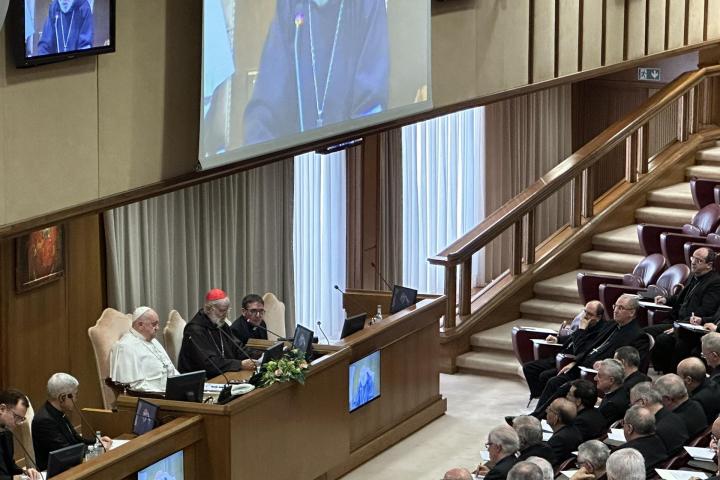 El encuentro finalmente ha sido presidido por el papa, a pesar de la "inflamación pulmonar" que ha padecido los últimos días, y ha hablado con los prelados durante más de dos horas.