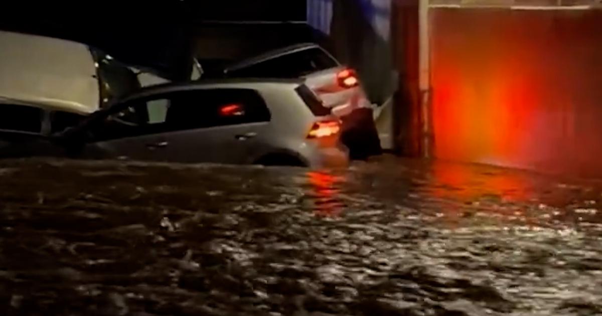 Una fuerte riada ha arrastrado una treintena de vehículos esta madrugada, durante unas lluvias torrenciales.