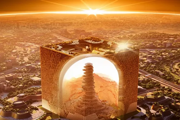 El edificio, que no será un rascacielos al uso, estará en Riad, Arabia Saudí, y será en realidad un cubo con un rascacielos en espiral en el interior que en realidad ocupará lo equivalente a 20 edificios como el Empire State Building.