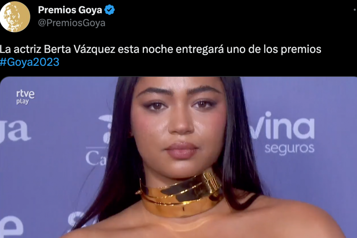 "Esta mirada sobre los cuerpos de las mujeres es enfermiza", ha asegurado al compartir un vídeo de la cuenta de la red social del pájaro azul de los Premios Goya, que hacía un repaso en primer plano de Vázquez de la cabeza a los pies.