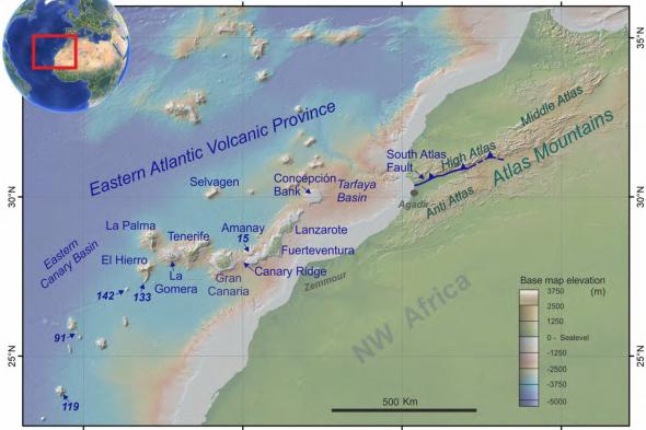 Por lo tanto, los episodios de levantamiento de las Islas Canarias se deberían a la conexión con la cordillera del Atlas, que se extiende durante más de 2.400 kilómetros recorriendo los países de Marruecos, Argelia y Túnez