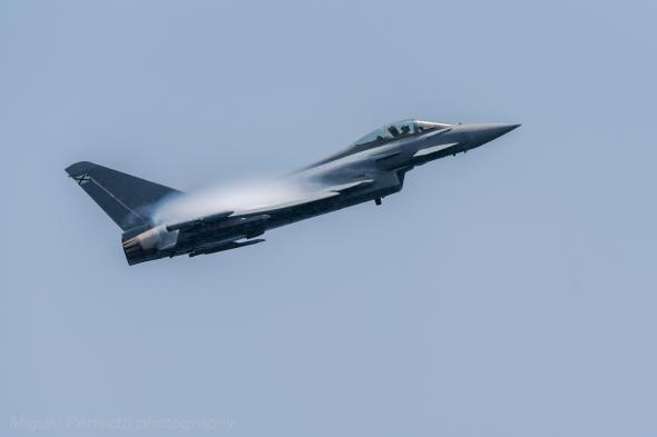Este Eurofighter, de matrícula C.16-70 es uno de los aviones utilizados para pruebas de Airbus Defense en España, y el pasado 29 de noviembre fue el primero en realizar un vuelo desde la factoría de Airbus de Getafe.