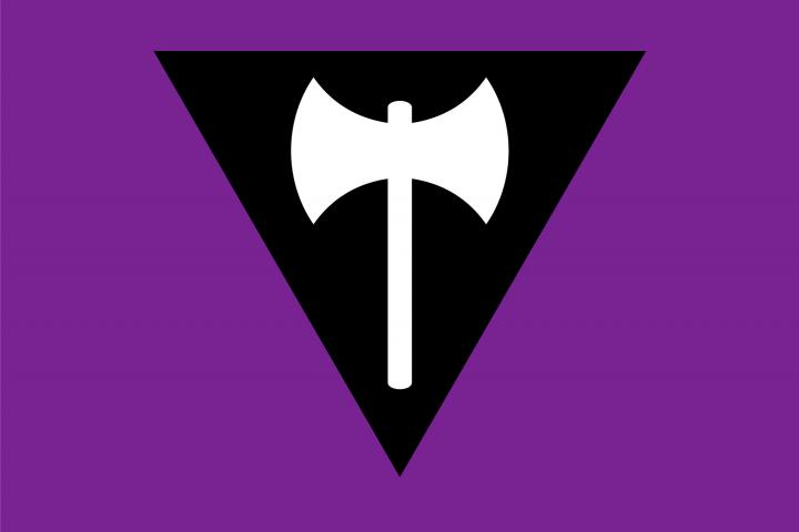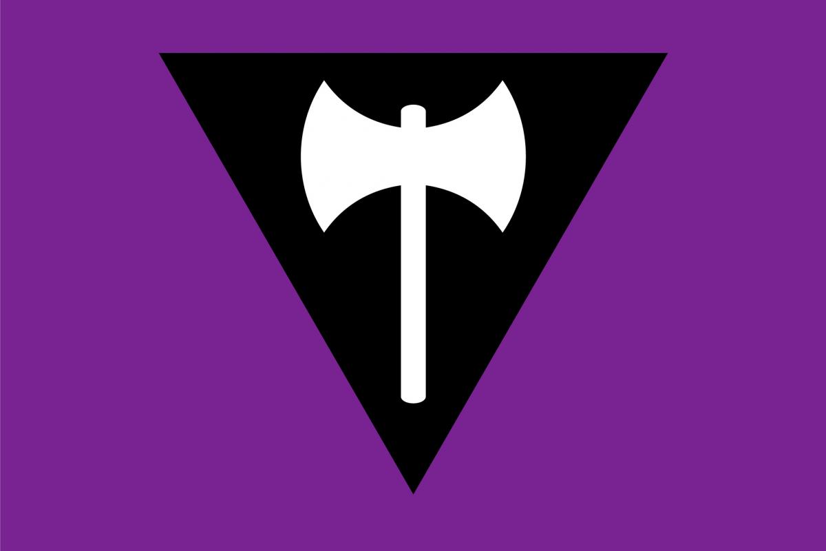 Sin embargo, más allá de la interrupción del acto de Irene Montero y de que ésta les diese la palabra, ha habido un detalle del grupo de mujeres ha llamado la atención de muchos. Una de ellas llevaba una bandera morada, con un triángulo negro en el centro y un hacha blanca de dos filos. Se trata de la bandera Labrys, un símbolo utilizado por la comunidad lésbica y tiene una interesante historia detrás.