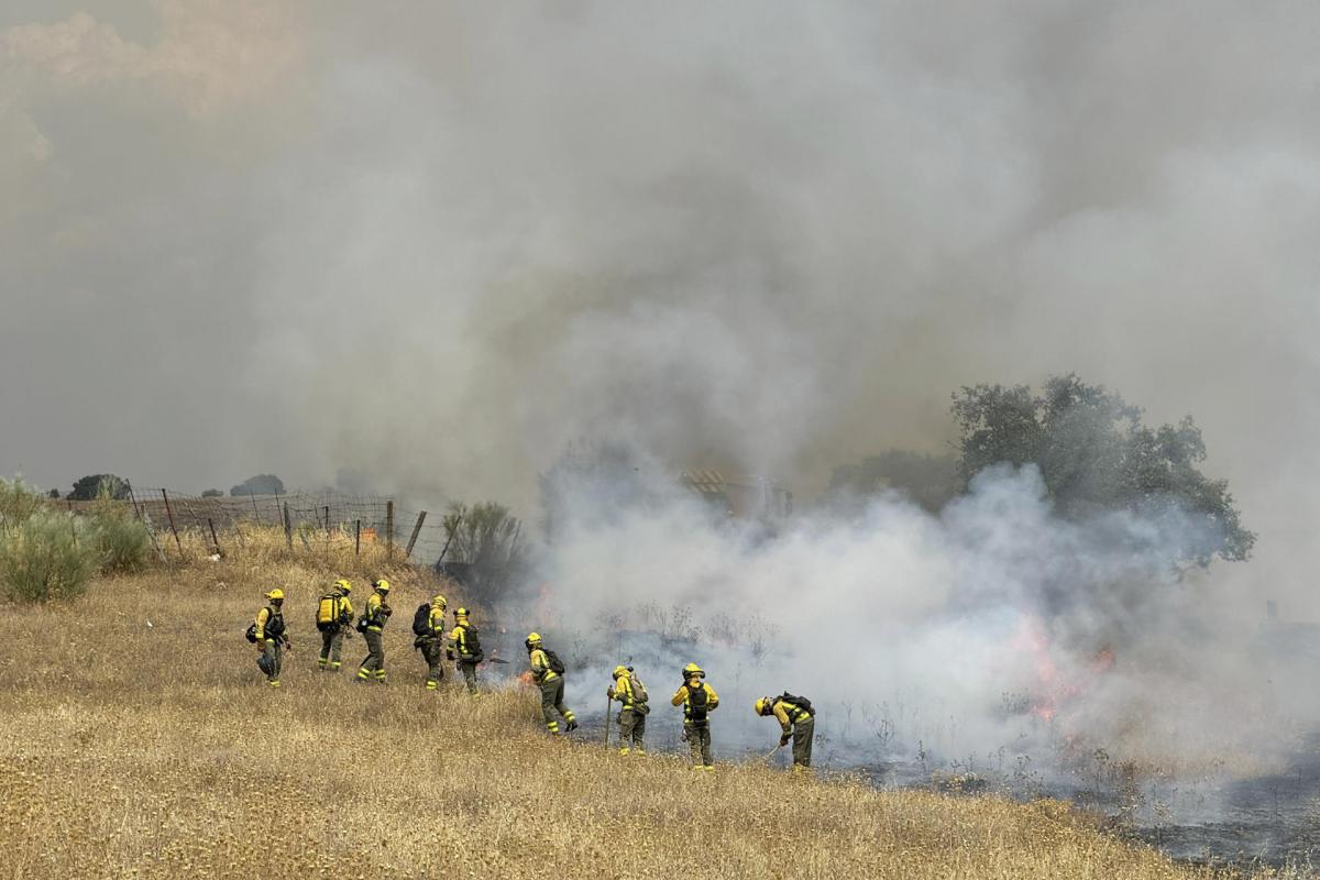 Quince dotaciones de Bomberos y las Brigadas Forestales de la Comunidad de Madrid han estado refrescando el interior del perímetro de 535 hectáreas y apagando los pequeños focos de fuego que se han formado, sobre todo en tocones, bases de troncos de arbolado, pequeñas construcciones agrícolas y postes de madera de los cerramientos de las fincas.