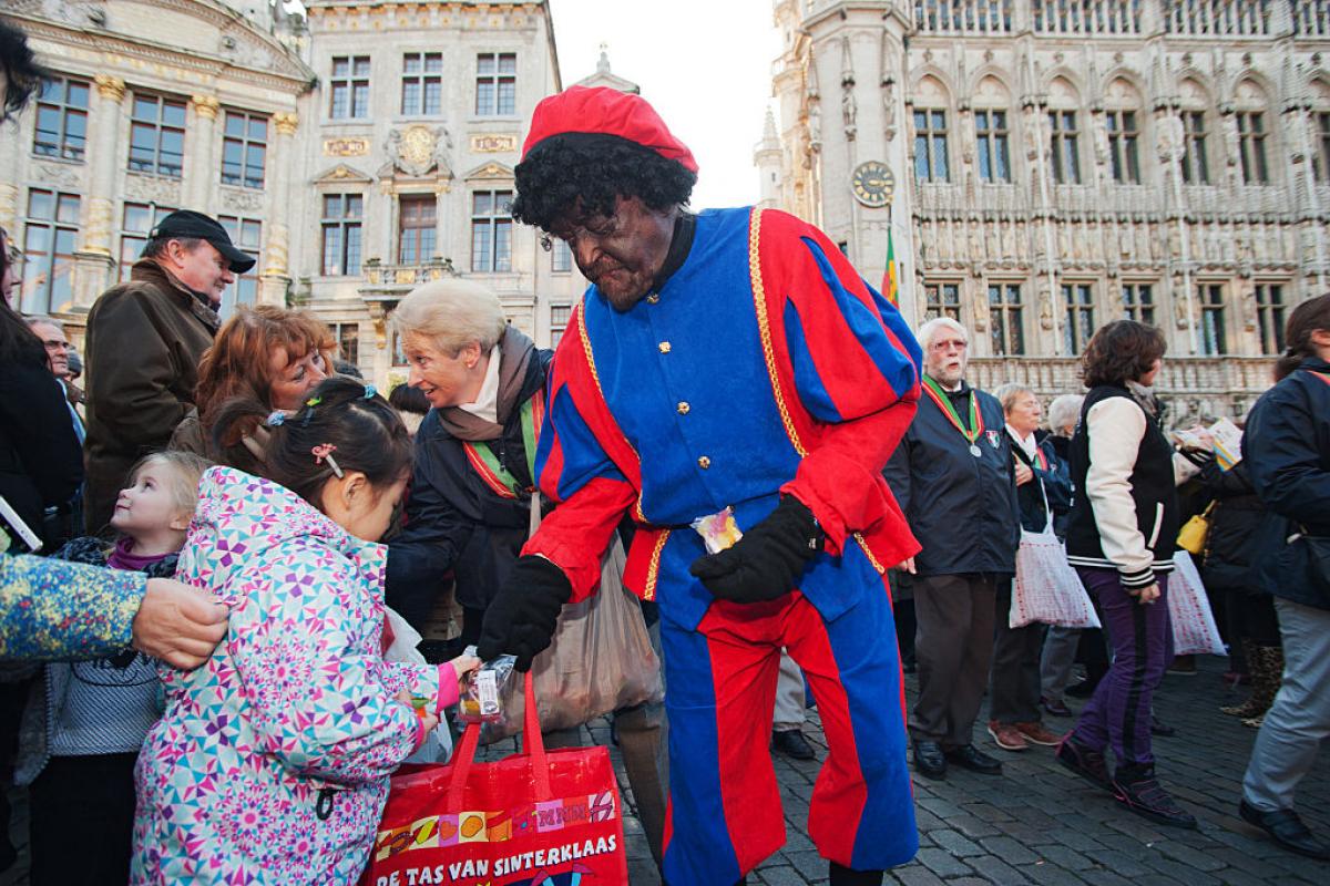 Este anciano venerable no vuela en trineo ni va en camello, sino que viaja en un barco de vapor que atraca durante un gran evento en el puerto de Amberes, en el caso belga. Desembarca con su caballo blanco, Amerigo, acompañado de su ayudante, Zwarte Pieten o Pedro el negro, un paje que va vestido con traje renacentista, plumas y pendientes dorados y que arrastra una polémica seria de la que hablamos más adelante.