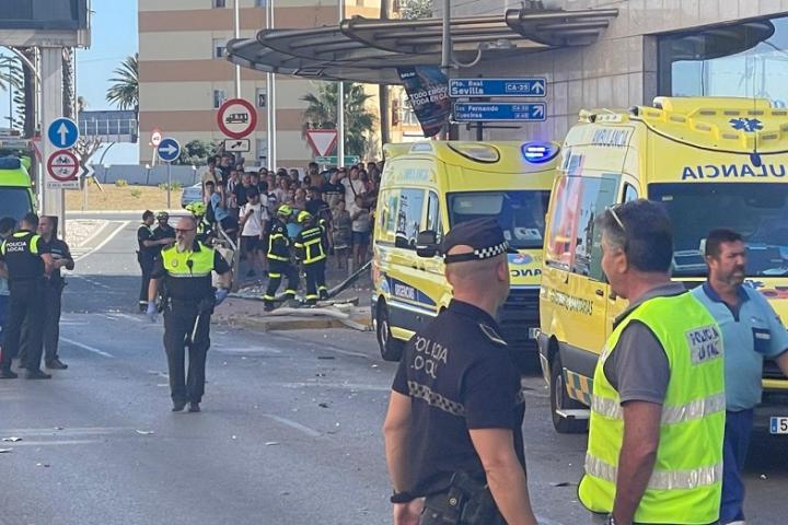 Tres muertos al estrellarse un autobús sin frenos contra un centro comercial en Cádiz