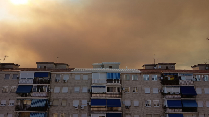 Este humo denso ha obligado a confinar la urbanización Calypo Fado, perteneciente a la localidad de Casarrubios del Monte, y es visible incluso desde multitud de zonas de Madrid, donde ha llegado el olor e incluso ha caído ceniza arrastrada por el viento.