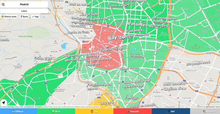 Hay un mapa, Hoodmaps, que muestra cómo los vecinos de un barrio perciben esa zona específica de la gran ciudad. Refleja diferentes descripciones como Instagramers en la zona del Retiro o Votantes de Vox en Chamberí.
