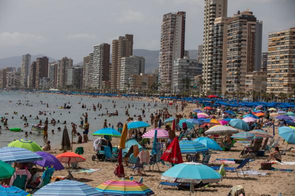 Este mes de agosto Benidorm—Alicante— ha vivido dentro de unas cifras de ocupación similares a las obtenidas antes de la pandemia por la COVID-19 a pesar del descenso del principal mercado emisor como es el de Reino Unido. Hasta el 29,6% de los turistas son británicos, y respecto a julio, han experimentado un receso de más de diez puntos, según la Asociación empresarial hotelera y turística de la Comunidad Valenciana—HOSBEC—, quien registra un 92,2% de ocupación, cerca del 94,4% del mismo periodo de 2019.