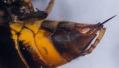 Es una de las especies de avispa de mayor tamaño, caracterizada por la terminación amarilla de sus patas y por el tamaño de su aguijón, que produce una dolorosa picadura que torna en escozor horas después. Ojo, es necesario diferenciarla de la avispa autóctona española, pero también del avispón europeo ('Vespa cabro'), muy similar pero que se encuentra en peligro.