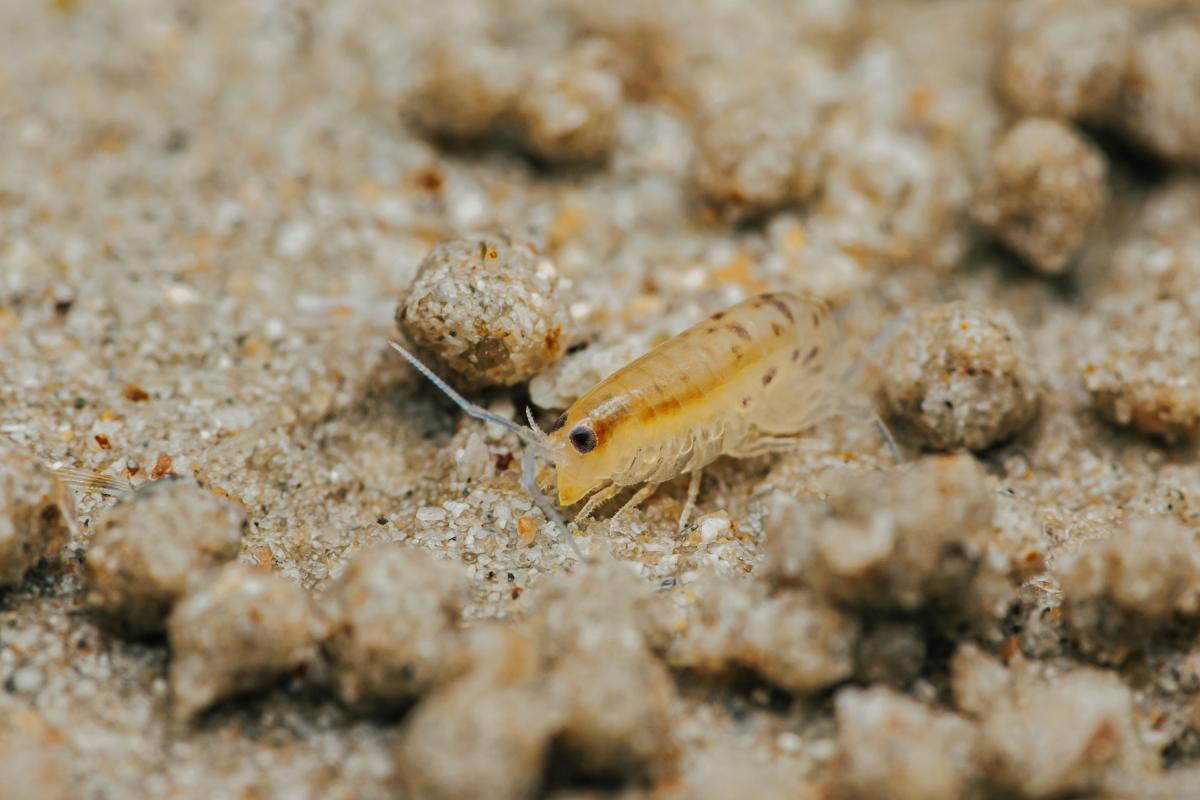 La pulga de playa es una especie de crustáceo anfípodo de pequeño tamaño, que habita en la zona intermareal de las playas de la península ibérica. Se alimenta principalmente de algas y los desechos orgánicos en descomposición, por lo que su existencia es de gran utilidad para limpiar los granos de arena uno a uno. De hecho, se considera un bioindicador de la calidad del agua.