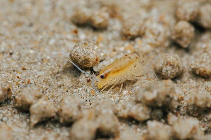 La pulga de playa es una especie de crustáceo anfípodo de pequeño tamaño, que habita en la zona intermareal de las playas de la península ibérica. Se alimenta principalmente de algas y los desechos orgánicos en descomposición, por lo que su existencia es de gran utilidad para limpiar los granos de arena uno a uno. De hecho, se considera un bioindicador de la calidad del agua.