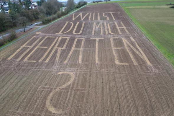 Un agricultor ha usado un campo de remolacha y una enorme cantidad de paja para escribir una propuesta de matrimonio de lo más romántica y que, por suerte, ha salido de la mejor manera.