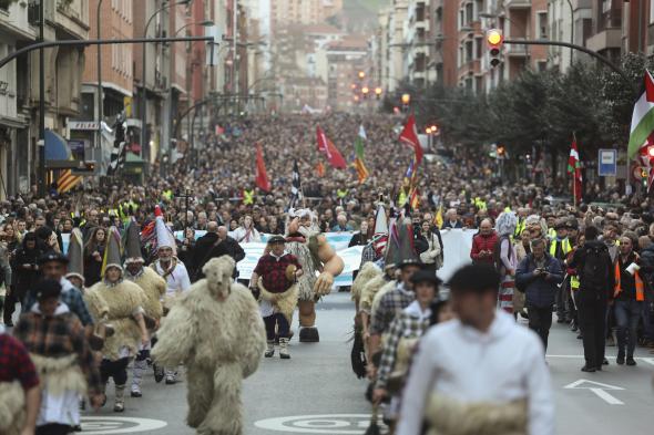 Decenas de miles de personas se han manifestado este sábado en Bilbao en defensa de los derechos de los presos de ETA y han pedido el fin de las "excepcionalidades" en la política penitenciaria que, según han denunciado, se aplica a este colectivo.