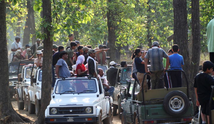 Foto: Turistas observan a un tigre en el Parque Nacional de Bandhavgarth, India. ©Brian Gratwicke