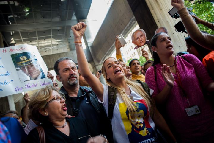 La esposa del preso político Leopoldo Lopez, Lilian Tintori en la Defensoría del Pueblo el pasado miércoles. EFE/MANAURE QUINTERO