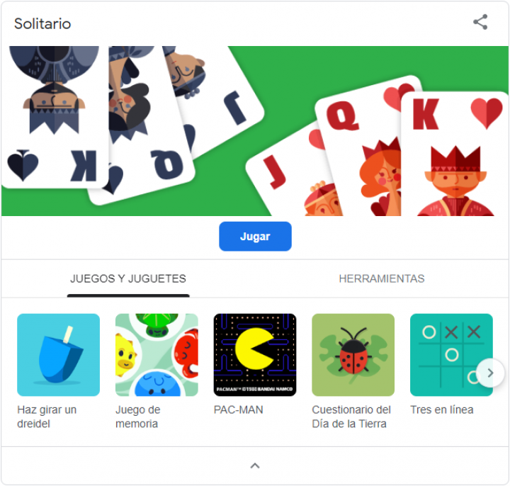 Pero Google también tiene juegos para sus usuarios. Muchos de ellos salen escribiendo en el buscador el nombre como, por ejemplo, el solitario. También hay del tres en raya, pac-man, snake o buscaminas. Una diversión asegurada para quienes tienen un rato aburrido. Sin necesidad de instalar ninguna aplicación en el móvil.