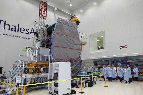 Su satélite gemelo ya está en Toulouse, donde el módulo de comunicaciónes se está terminando de ensamblar al resto de la estructura. Desde allí, viajará en un avión de grandes dimensiones hasta Florida.