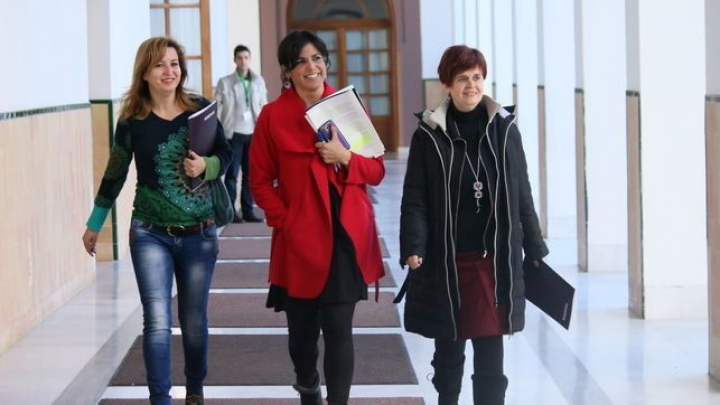 Teresa Rodríguez, como portavoz, Esperanza Gómez, coordinadora, y Carmen Lizárraga, presidenta, somos las tres mujeres que forman la dirección del Grupo Parlamentario de Podemos Andalucía. En este 8 de Marzo de 2016, las tres queremos compartir nuestra experiencia en la tribuna de la Cámara andaluza. Con ello queremos sumarnos a la lucha y la reivindicación por la Igualdad que desde hace siglos llevamos haciendo las mujeres. Queremos hacerlo denunciando el acoso político que, junto con otras compañeras diputadas, seguimos sufriendo en unas instituciones que deberían ser las encargadas de acabar con el machismo. la distancia que sigue existiendo entre la igualdad formal de las leyes y la desigualdad real en nuestras sociedades e instituciones es ésta: