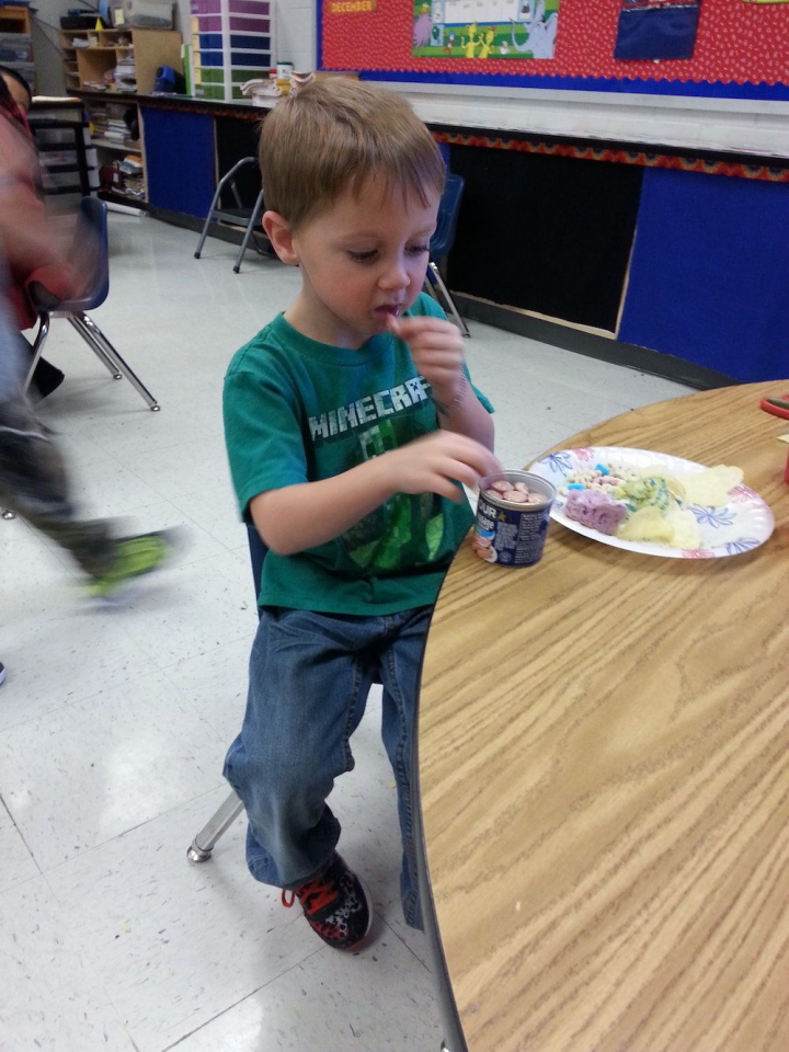 Mi hijo Cayden tiene 5 años y va a preescolar. Está acostumbrado a celebrar fiestas con sus compañeros de clase en las ocasiones especiales, ya que lleva varios años yendo al colegio y empezó la guardería con dos años y medio. También está acostumbrado a ser excluido de esas fiestas y de casi todas las actividades escolares relacionadas con la comida debido a sus múltiples y graves alergias alimenticias. Tiene un síndrome poco común llamado Síndrome de Enterocolitis Inducida por Proteínas de Alimentos (o SEIPA, para abreviar). Actualmente es alérgico a 12 alimentos, que sepamos, y podría ser alérgico a cualquier alimento que no haya tomado nunca. No existe ninguna prueba para saber a qué es alérgico, aparte de darle algo nuevo para comer y esperar a ver si le sienta mal.