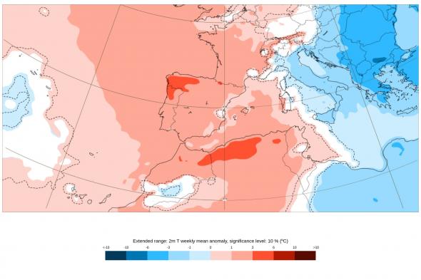 Respecto a las temperaturas a partir de esa fecha, comenzarán a descender en la mayor parte de la Península, siendo más notable en la mitad sur, mientras que en Canarias y Baleares no se pronostican cambios. Las mínimas se mantendrán sin cambios significativos, aunque se espera que haya heladas débiles en los Pirineos.