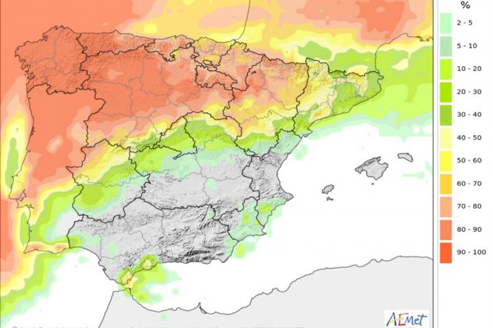 Aunque se desconoce como será su evolución, sí que se sabe que traerá lluvias a la gran parte de zonas del país, siendo en forma de nieve en las principales cordilleras. Los lugares donde habrá menor probabilidad de precipitaciones será en el norte y el este, como reflejan los mapas probabilísticos, aun así habrá que esperar para comprobar su paso final.