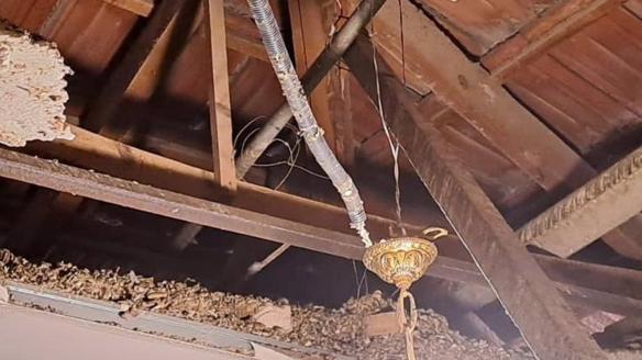 La jornada de fuertes lluvias y viento ha provocado el hundimiento del techo de una vivienda en Elche (Alicante), por lo que los moradores del edificio han sido realojados. A las condiciones climatológicas adversas se ha sumado la acumulación de excrementos de paloma en el techo y a la antigüedad del inmueble.