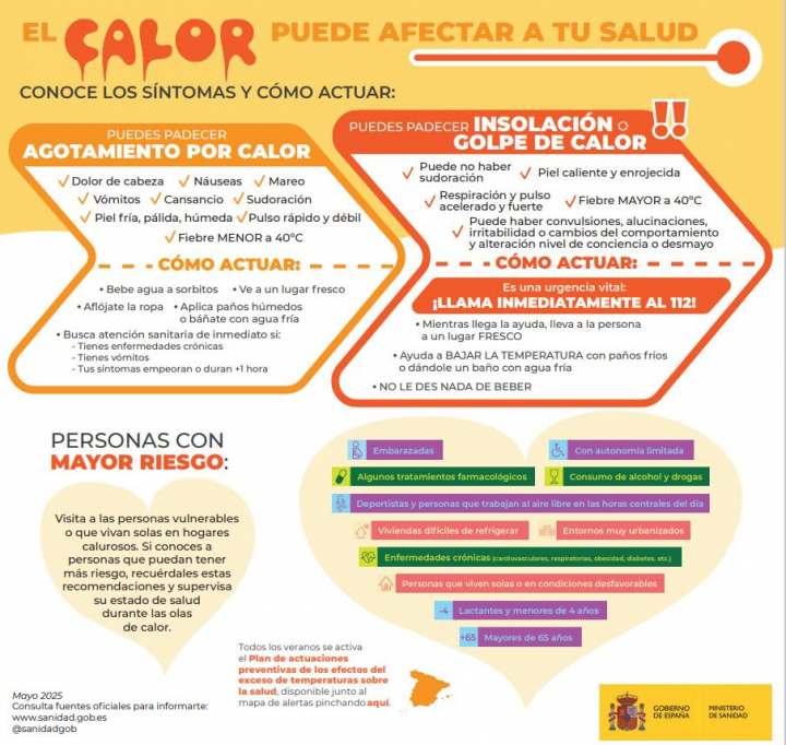 Desde el Ministerio de Sanidad ya habían advertido de que hay que tomar precauciones. Por este motivo han compartido una serie de consejos en lo tocante a cómo actuar ante un caso de golpe de calor, pero estableciendo diferencias según se trate de un episodio determinado u otro.
