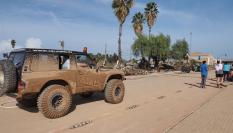 Una de las mangas ha llegado hasta la playa de Cabopino, en el límite entre las localidades malagueñas de Marbella y Mijas, y su paso por el litoral antes de disolverse ha afectado a la cubierta de un chiringuito, que ha salido volando y ha permanecido suspendida en el aire durante unos instantes.