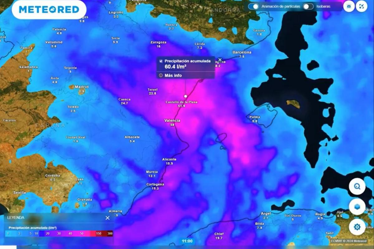 Dejará lluvias torrenciales en Baleares, Comunidad Valenciana y Cataluña. Podrían superarse los 100 o 200 litros por metro cuadrado en algunas zonas.