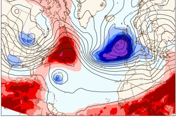 El experto ha subrayado, en referencia a las características de la borrasca Nelson, que “es una situación realmente anómala para la época, con esos ~955 hPa de presión y ~495 dam de altura geopotencial en la troposfera media”.